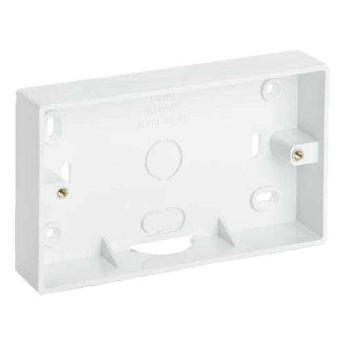 The Surface Box Twin is a durable and practical mounting box for 2-gang switches or sockets, perfect for electrical installations where wall recessing is not possible. Built from high-impact PVC, it offers safety, longevity, and a professional finish for exposed wiring setups.